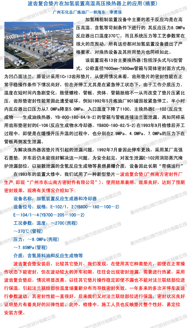 波齒復(fù)合墊片在加氫裝置高溫高壓換熱器上的應(yīng)用。